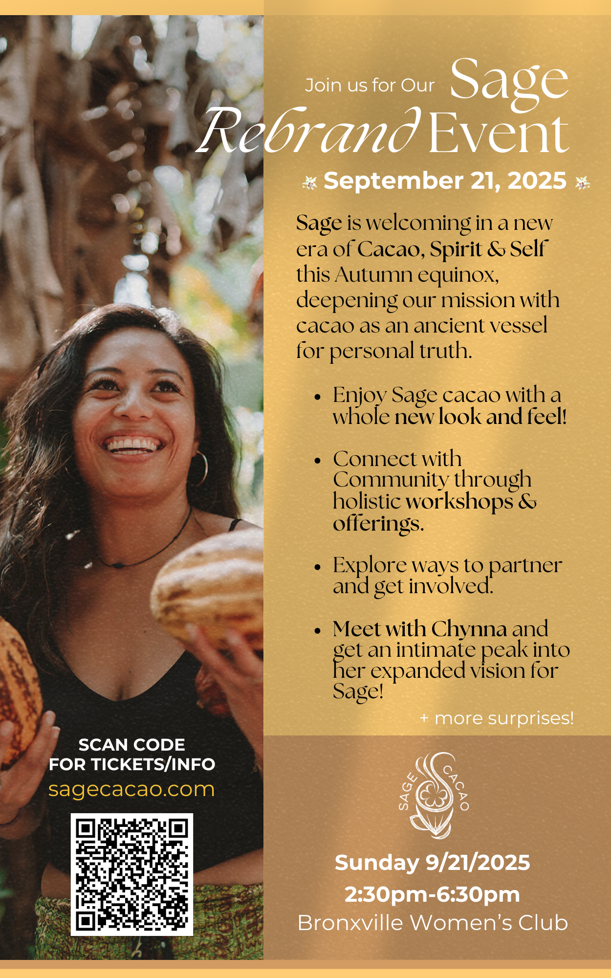 We’re revealing a new direction—rooted in reciprocity, sharing cacao as more than chocolate: a vessel of inner truth. Come sip with our founder, Chynna Dee Andrada, and glimpse her vision for how Sage weaves into daily life, business, and the wider holistic community.